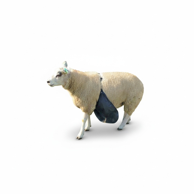 Dit is een eenvoudig beschermingsschort voor rammen die je bij de ooien wilt laten lopen zonder dat ze kunnen dekken. Het schort hangt voorop het borst- en buikgebied van de ram en blokkeert rechtstreeks contact tijdens de dekking.