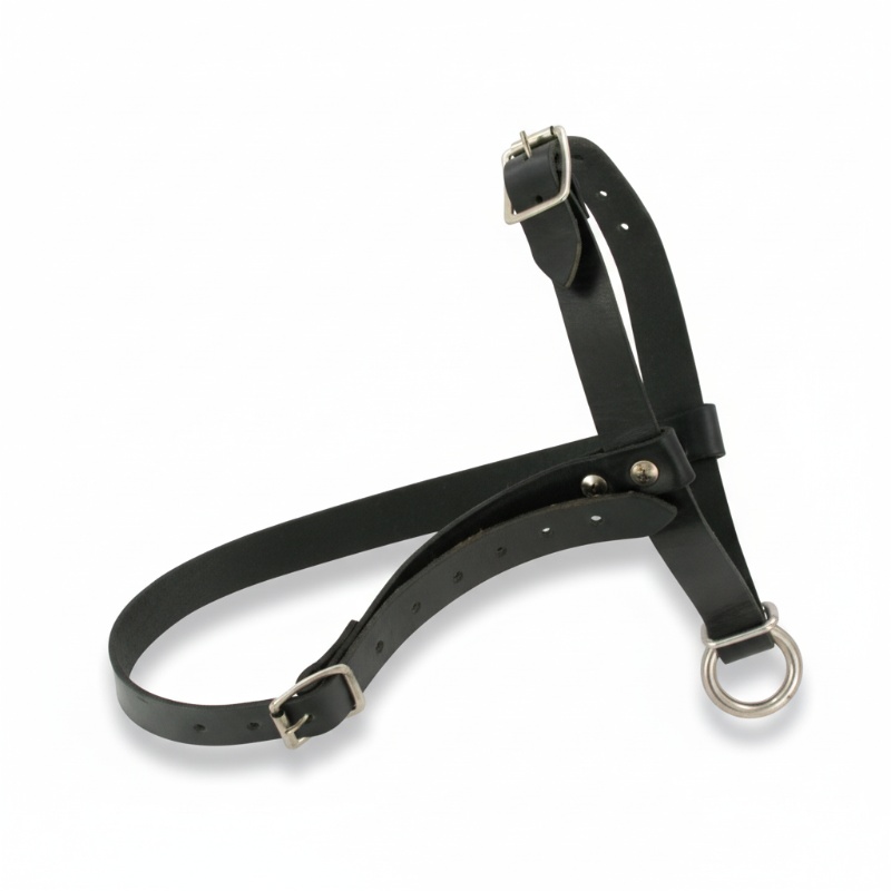 Dit is een eenvoudig halster voor lammeren, gemaakt van zwart leer met een bandbreedte van 16 mm. Het halster is bedoeld om het lam tijdelijk te leiden en vast te houden tijdens routinehandelingen zoals scheren, vaccineren, controleren of verplaatsen.