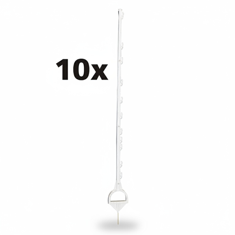 Duurzame kunststofpaal van 1,55 m, bedoeld voor semi-permanente afrasteringen. De paal heeft een stijgbeugelvoet waarmee hij snel en zonder graafwerk in het weiland geplaatst kan worden. Verkrijgbaar in twee kleuren. Wordt geleverd per set: 2 x 5 stuks.