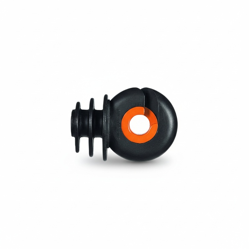 Stevige ringisolator voor montage in houten palen, geschikt voor kunststof draad en cord. Metalen kern precies in het midden om kortsluiting te voorkomen; draad loopt vrij door de ring en blijft op zijn plek. Voorzien van extra scherpe punt voor inschroeven met schroevendraaier of boormachine en een oranje slijtindicator die aangeeft wanneer vervanging nodig is. Fabrieksgarantie 10 jaar. Geschikt voor afrasteringen bij schapen (hoeken, poorten, tussenpalen).